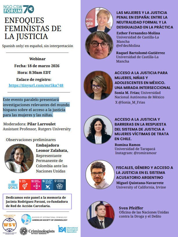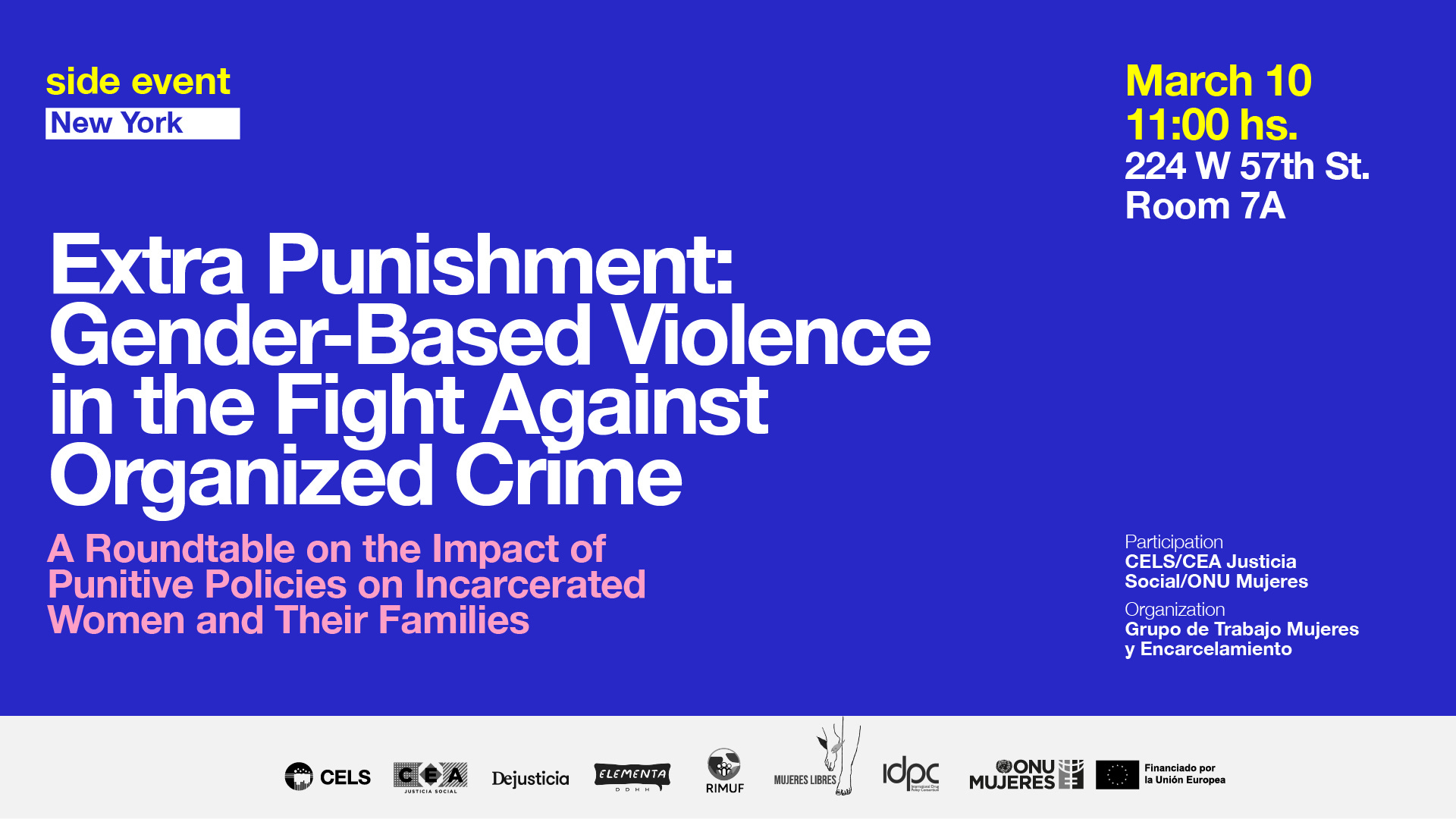 The event aims to share the preliminary findings of an ongoing research project in Latin America and to foster a space for dialogue to examine how criminal prosecution strategies and organized crime control policies produce differentiated impacts on women, including those deprived of liberty and their family environments.