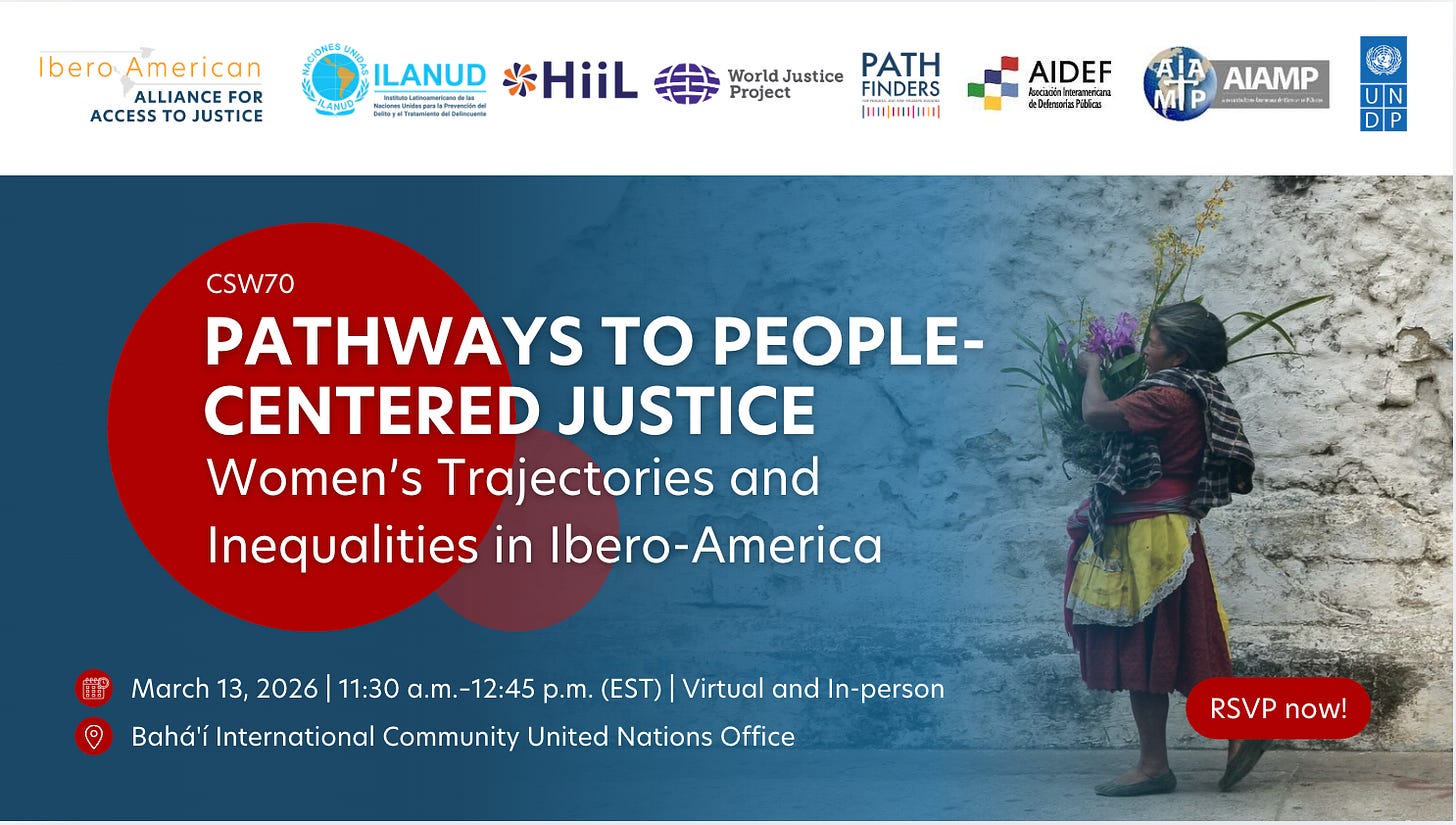 The event aims to present the Alliance’s new thematic report to a diverse audience of policymakers, justice operators, civil society actors, and international organizations. Through the dissemination of its key findings, the event seeks to position Ibero-America within global debates on women’s access to justice, highlight structural gaps, and showcase good practices and innovative responses moving towards more people-centered justice systems, with a specific in-focus emphasis on women deprived of liberty.