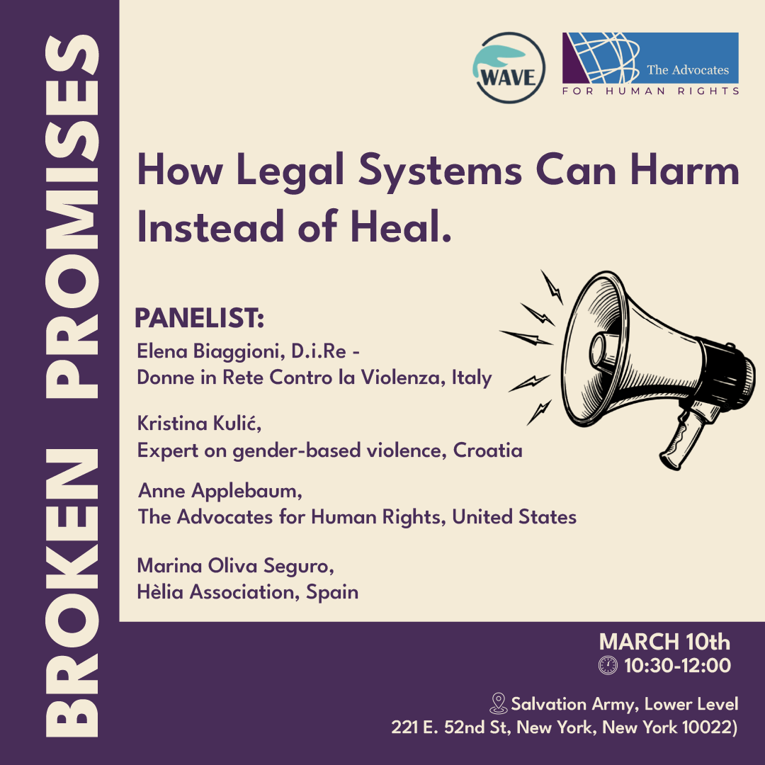 Through the present event, we will present global experiences, particularly in the U.S and Europe, to highlight how women experience barriers to justice that mirror the very harms from which they are seeking protection.