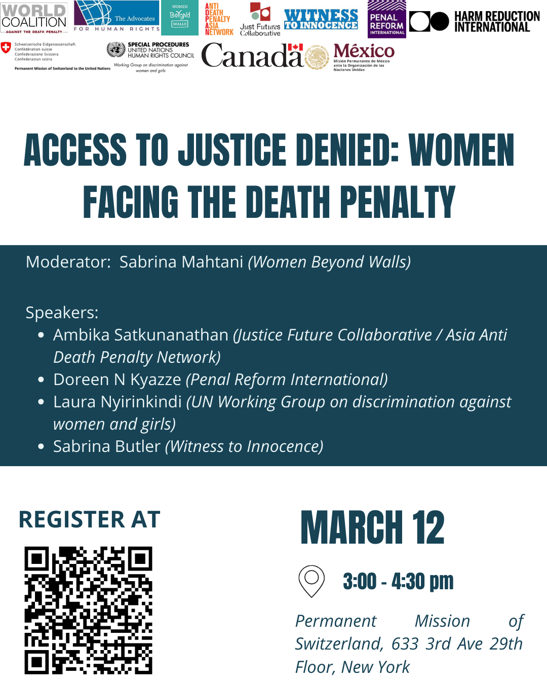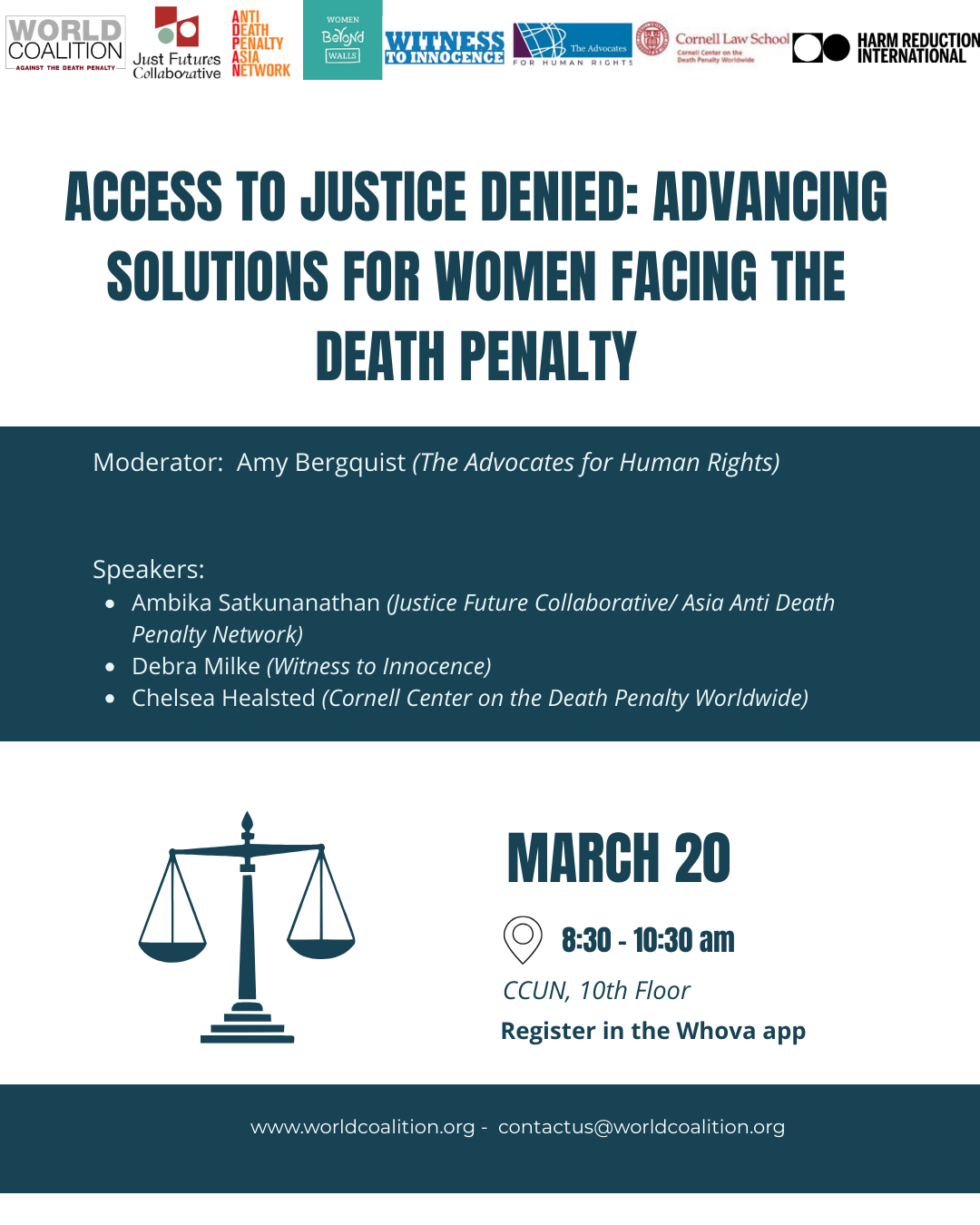 The discussion will highlight promising practices, including the use of gender-based mitigation evidence, strategic litigation, legislative reform efforts, and international human rights mechanisms. Speakers will present concrete examples of how lawyers, civil society organizations, and advocates have successfully challenged death sentences in cases involving survivors of gender-based violence, coercion, or exploitation. Particular attention will be given to building gender-responsive defense strategies, strengthening data collection, and developing advocacy campaigns that center the lived experiences and agency of women directly impacted.