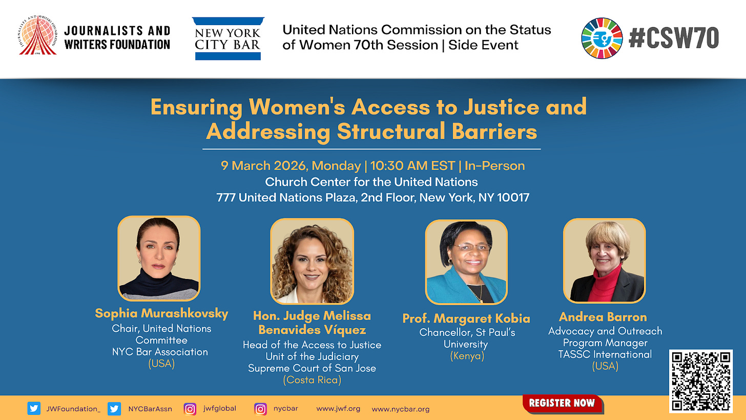 This panel seeks to foster meaningful dialogue, identify and propose concrete actions to uphold women’s human rights and ensure access to justice, promote inclusive legal systems, and dismantle structural barriers.