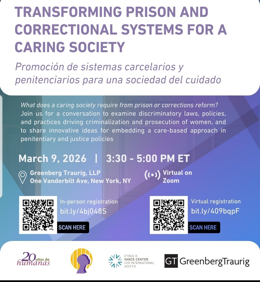 Join the Women in Prison Network for a dialogue on the structural barriers and challenges faced by women deprived of liberty in accessing justice across the Americas. The event will explore dynamics of criminalization, pathways into alleged offenses, and the role of institutional violence, while also highlighting diverse strategies that support and advocate for women in these contexts.